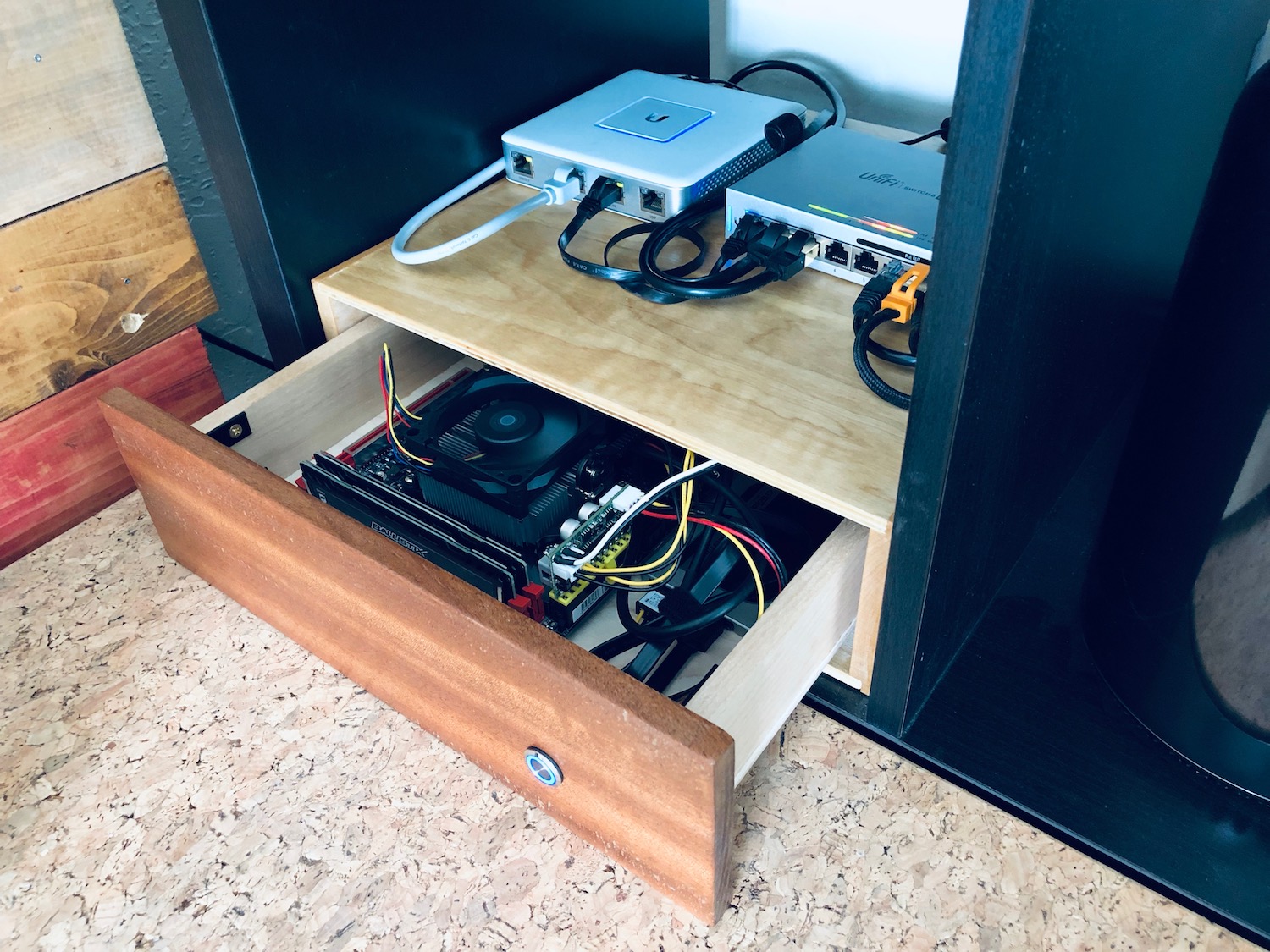 Over the weekend I migrated my home server from an aging Mac mini with far too little RAM to a new server in a handmade wooden case.