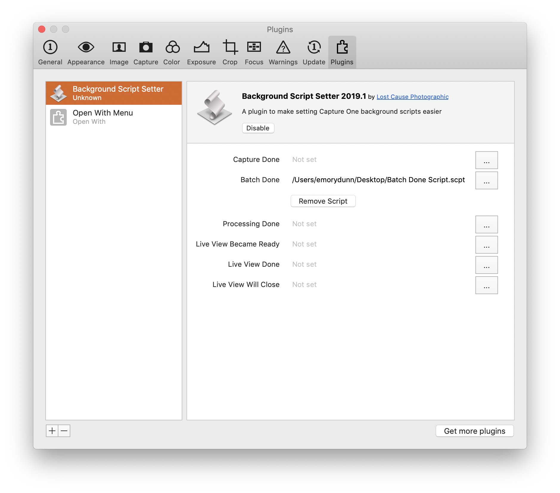 The plugin reads the available scripts for the hosting version of Capture One, so future releases of Capture One won't require updates to the plugin.