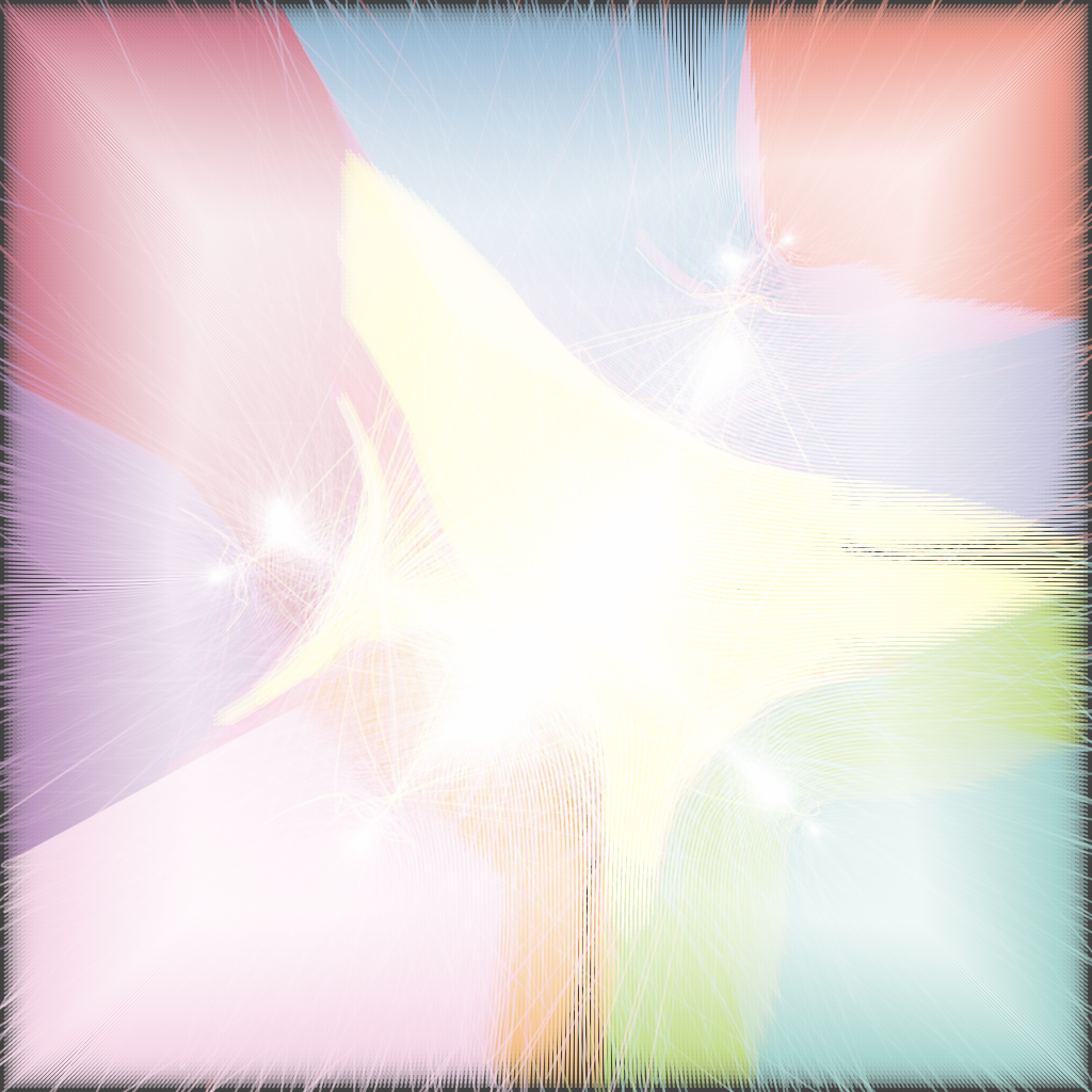 A more reasonable density of lines creates a really nice nebula effect, with most of the paths going towards their closest root, but not all. The overlap produces striking bolts of light between roots.
