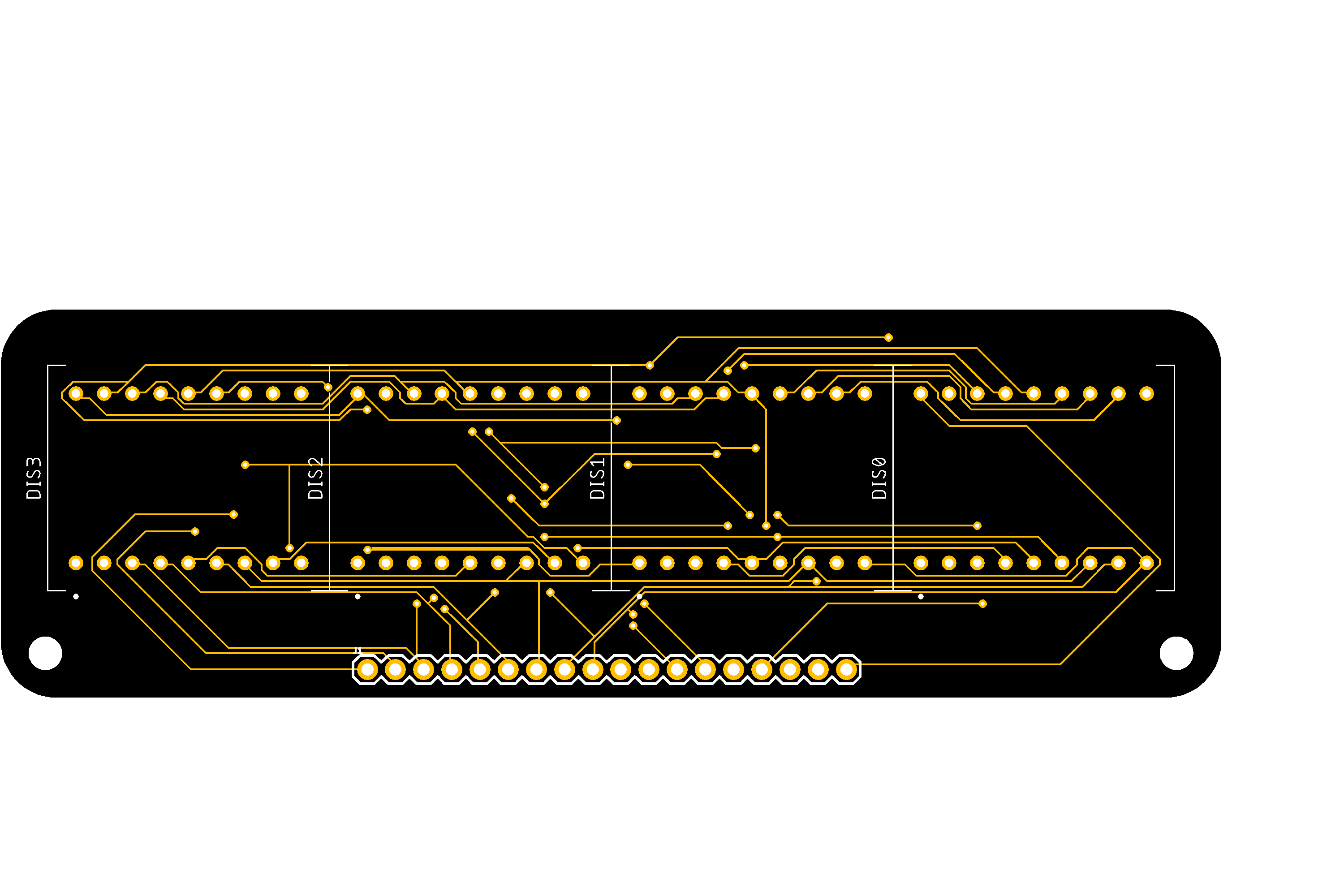 While prototyping everything on a breadboard I'd never used more than two displays simply due to the wiring complexity. Each display requires 18 pins, all of which are connected together. While I would have liked to have installed all four displays, at the end of the day it wouldn't have mattered because I'd still be routing everything in CAD anyway with no way of knowing I'd transferred all of the wires correctly.