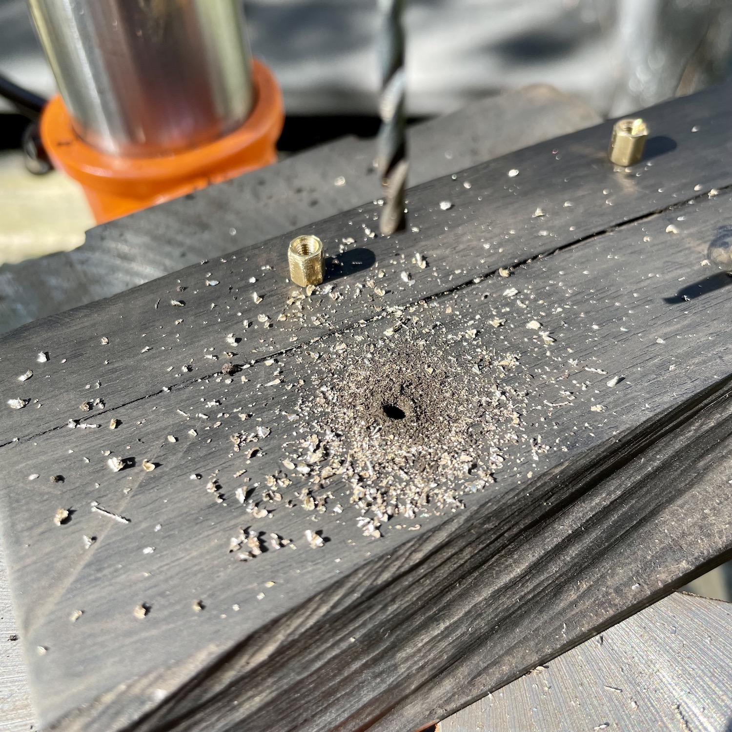 I proceeded to measure and mark out the length and holes for the standoffs. Unfortunately I decided to do that as the sun was setting and messed up the locations of two of the holes. I filled them and re-drilled, being much more careful, only to break off not one, but two standoffs!
